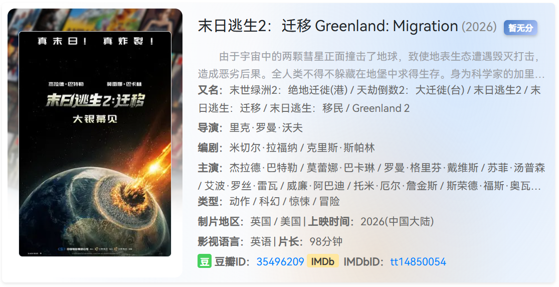 2026年1月美国科幻电影【 末日逃生2:迁移 】中英字幕 栏目:电影区 作者:哈皮 时间:2026-01-19 12:10:19   **简介:** 2026年开年,美国科幻大电影上线 —— 末日逃生2:迁移,资源内置中英双语,想看的自行去下方链接自取,**由于资源太新,被河蟹的可能性极大,尽快转存!** > [!success] **资源链接** > https://pan.quark.cn/s/8bea29b93ce3 版权声明:本站不存储任何实质资源,该帖为发布的网盘链接介绍帖。如您认为本站任何介绍帖侵犯了您的合法版权,请联系站长 ( 微信:qbqb0925 ) 进行投诉,我们将在确认本文链接指向的资源存在侵权后,立即删除相关介绍帖子!