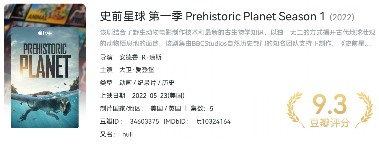 BBC纪录片《史前星球》S01-S02季合集 【4K HDR 高码率】 内封简繁英双语特效字幕【98.6G】 栏目:纪录片 作者:哈皮 时间:2025-02-14 13:32:39     **简介:** 该剧结合了野生动物电影制作技术和最新的古生物学知识,以独一无二的方式揭开古代地球壮观的动物栖息地的面纱。该剧集由BBCStudios自然历史部门的知名团队支持下制作。《史前星球》以白垩纪时代的环境为背景,描绘了海岸、沙漠、河流、冰雪世界和森林的场景,展示了鲜为人知且令人惊讶的恐龙生活。 > [!success] **资源链接** > [https://pan.quark.cn/s/dda9cf7c0d6d](https://pan.quark.cn/s/dda9cf7c0d6d "https://pan.quark.cn/s/dda9cf7c0d6d") 版权声明:本站不存储任何实质资源,该帖为发布的网盘链接介绍帖。如您认为本站任何介绍帖侵犯了您的合法版权,请联系站长 ( 微信:qbqb0925 ) 进行投诉,我们将在确认本文链接指向的资源存在侵权后,立即删除相关介绍帖子!