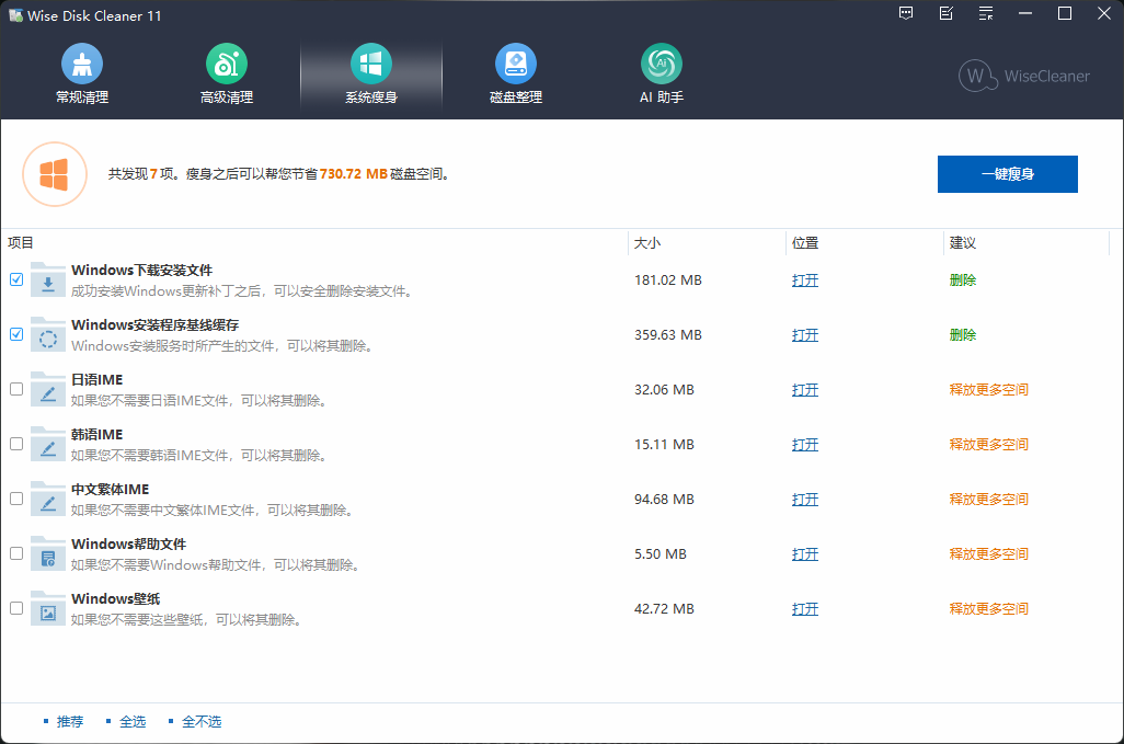 超级好用的C盘清理工具 WDCFree V11.1.2,清理能力远超360,本人首次使用就清理掉20GB垃圾! 栏目:软件区 作者:哈皮 时间:2025-08-13 08:59:29   **简介:** 如果你的电脑还用360去清理C盘的话,可以去卸载掉了,360不但清理不干净,反而给你电脑增加广告和垃圾。 这款软件可以深度清理C盘垃圾,清理的效率远远超过360,**我第一次用的时候,C盘就清理掉 20GB 的垃圾**,**而且可以设置计划任务,比如规定软件每隔多少天清理一次,它会按照设定自动执行清理任务**。具体的操作步骤很简单,只要你会用电脑,就会操作,这里就不多说了。 > [!success] **资源链接** > [https://pan.quark.cn/s/a3a4ef501a06](https://pan.quark.cn/s/a3a4ef501a06 "https://pan.quark.cn/s/a3a4ef501a06") 版权声明:本站不存储任何实质资源,该帖为发布的网盘链接介绍帖。如您认为本站任何介绍帖侵犯了您的合法版权,请联系站长 ( 微信:qbqb0925 ) 进行投诉,我们将在确认本文链接指向的资源存在侵权后,立即删除相关介绍帖子!