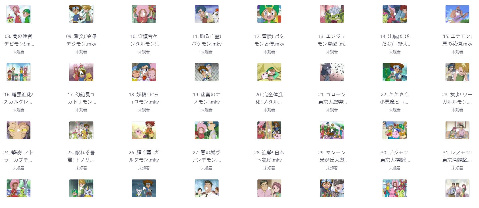 数码宝贝(1999) S01-S08季.1080p.国粤日三语版+剧场版+OVA共10部 栏目:动漫区 作者:哈皮 时间:2025-01-07 09:05:03    **简介:** **名称:**数码宝贝 デジモンアドベンチャー **导演:**细田守 **编剧:**本乡昭由,西园悟,雅木宏,前川淳 **主演:**藤田淑子,风间勇刀,水谷优子。天神有海 **类型:**动作,动画,惊悚,家庭,奇幻,冒险 **制片地区:**日本 **上映时间:**1999-03-07(日本) **影视语言:**日语 **评分:**9.5 **剧情简介:** 1999年,由于数码世界资料异常增生,导致数码世界和现实世界的连接发生紊乱。地球上相应地出现奇怪的自然现象:东南亚没有下雨,池塘全部干涸;中东却因为连场大雨发生洪水;美国则遇到有史以来最寒冷的冬天。11岁的少年八神太一(藤田淑子配音),和伙伴石田大和(风间勇刀配音)、武之内空(水谷优子配音)、泉光子郎(天神有海配音)、太刀川美美(前田爱配音)、城户丈(菊池正美配音)、高石武(小西寛子配音)一起参加了夏令营,一次意外却被神秘地送到了一个多彩的数码世界。在那里,他们得到了叫做“数码宝贝”的搭档。进入数码世界后,八神太一一行人遇到了凶恶的怪兽贝壳兽,眼看大家都要被抓住的时候,太一的亚古兽忽然进化成为暴龙兽,拯救了他们。进化到底是怎么回事情?数码世界究竟是什么?无数的谜团出现在被召选的小朋友们面前,精彩的冒险就这样开始了…… > [!success] **资源链接** > [https://pan.quark.cn/s/96ea26cce6c5](https://pan.quark.cn/s/96ea26cce6c5 "https://pan.quark.cn/s/96ea26cce6c5") 版权声明:本站不存储任何实质资源,该帖为发布的网盘链接介绍帖。如您认为本站任何介绍帖侵犯了您的合法版权,请联系站长 ( 微信:qbqb0925 ) 进行投诉,我们将在确认本文链接指向的资源存在侵权后,立即删除相关介绍帖子!